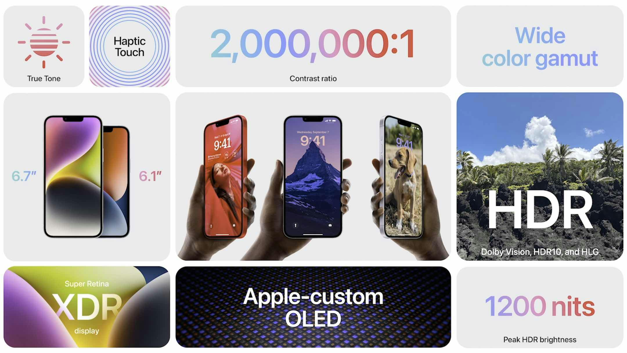 Naast de twee instapmodellen, presenteert Apple ook de duurdere iPhone 14 Pro en Pro Max met dezelfde respectievelijke schermformaten. Deze telefoons bieden een verbeterde TrueDepth-camerasysteem aan en beschikken over iets dat Apple een Dynamic Island noemt. Dat is een scherminkeping waar het bedrijf notificaties op weergeeft. Dit eiland kan zichzelf aanpassen en breder en smaller zijn, en zelfs knoppen weergeven van apps.