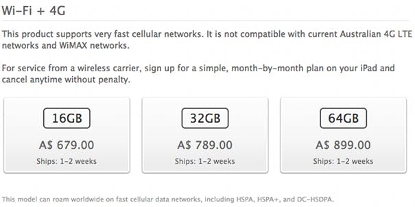 Daarnaast gaf de rechter Apple 90 dagen de tijd om een waarschuwing in zijn Australische online Apple Store te plaatsen. Deze waarschuwing heeft Apple dus vandaag online gezet. Met de melding waarschuwt Apple klanten dat de 4G-modellen van de nieuwe iPad geen verbinding kunnen maken met de 4G LTE- en WiMAX-netwerken in Australië.