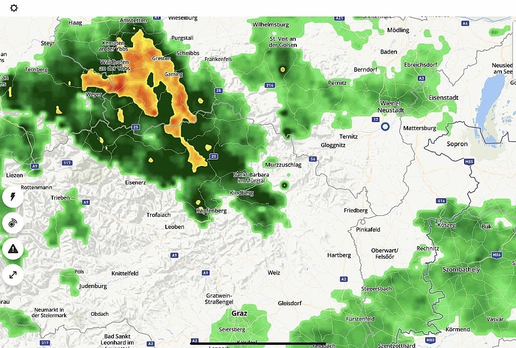Gelukkig is het ontwikkelen van zo’n spontane bui wel goed te volgen. En dus kun je er – al is het maar een half uur van te voren – best voor gewaarschuwd worden. In dat geval heb je een app nodig die bijvoorbeeld blikseminslagen laat zien. Je ziet dan vaak al ergens in de buurt ontladingen in beeld, waarbij je ook de richting van de bui kunt volgen.