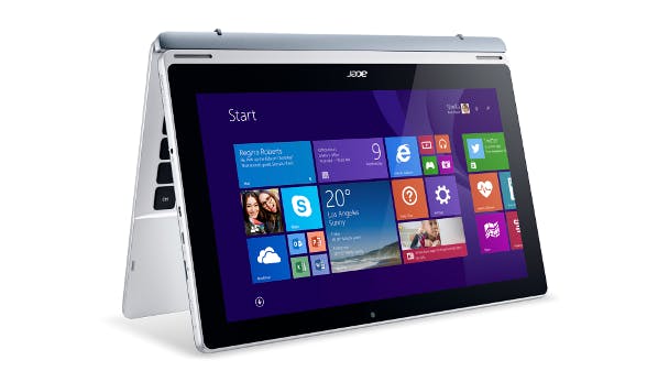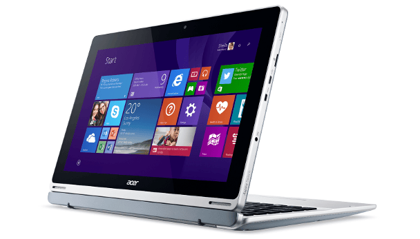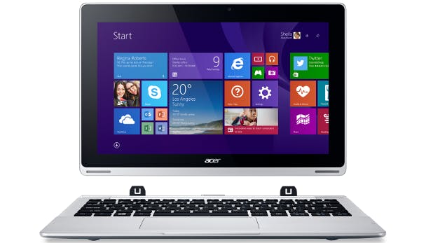 Acer Aspire Switch 11 SW5-111-187P ---------------------------------- **Prijs:** € 399,- (32 GB), € 449,- (64 GB) **Processor:** Intel Atom Z3745 **RAM:** 2 GB **Opslag:** 32 GB **Grafisch:** Intel HD Graphics **Beeldscherm:** 11,6 inch (1366 x 768) **Draadloos:** 802.11b/g/n, bluetooth 4.0 **Camera:** 2 megapixel **Aansluitingen:** Micro-Usb, usb 2.0, micro-HDMI, microSD, 3,5mm-aux **Afmetingen:** 29,8x20,5x1cm, 29,8x20,5x1,5cm (dock) **Gewicht:** 760 gram (tablet), 700 gram (dock) **Accu:** 33 Wh
