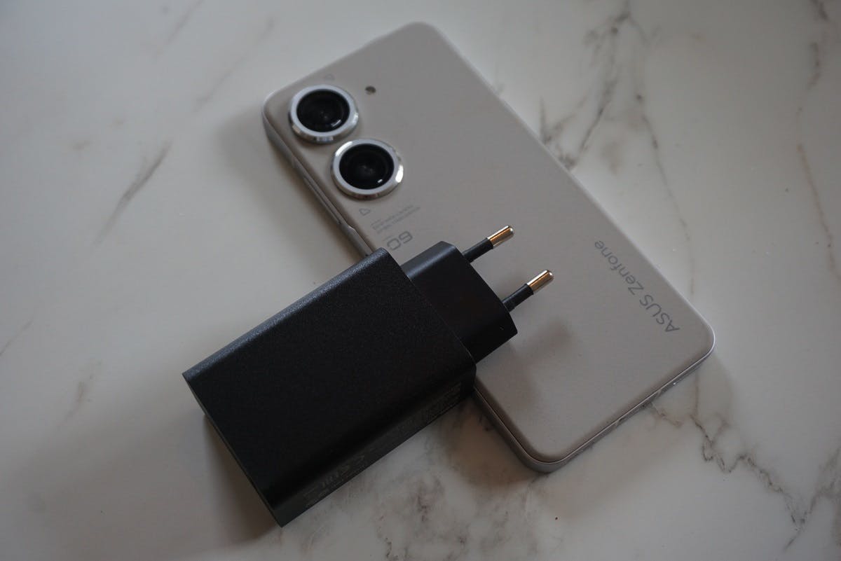 Het Asus-toestel doet er een half uur over om van 0 naar 56 procent op te laden en heeft totaal ruim zeventig minuten om helemaal op te laden. Prettig is dat de oplaadadapter en usb-c-kabel in de verkoopverpakking zitten. Steeds meer merken, waaronder Samsung en Apple, leveren alleen een oplaadkabel mee (naar eigen zeggen om het milieu te sparen).