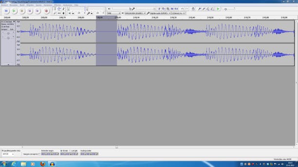 Om een fragment uit het geluidsbestand te snijden, moet u allereerst inzoomen op de passage waar het uitgehaald moet worden. Klik op het zoom-gereedschap (naast de transportsectie met bedieningsknoppen) en zoek de passage op. Als u een goed idee hebt welk fragment uit de golfvorm gesneden moet worden, verandert u uw cursor weer naar het selectie-gereedschap (de I). Selecteer het fragment en u ziet dat het een donkergrijze kleur krijgt. U hebt nu twee mogelijkheden. De eerste mogelijkheid verwijdert het gehele fragment en maakt het bestand korter. Klik op de Delete-toets op uw toetsenbord of kies voor Bewerken / Audio verwijderen / Verwijderen. Wilt u het gesneden fragment ergens anders neerzetten, dan kiest u niet voor Verwijderen, maar voor Knippen (Ctrl+X). Het fragment wordt naar het plakbord gekopieerd en u kunt het ergens anders inzetten door voor Bewerken / Plakken (Ctrl+V) te kiezen.