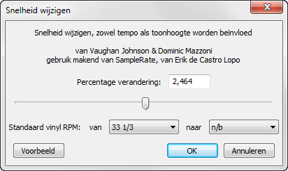 Met het effect Snelheid wijzigen kunt u muziek langzamer of sneller afspelen.
