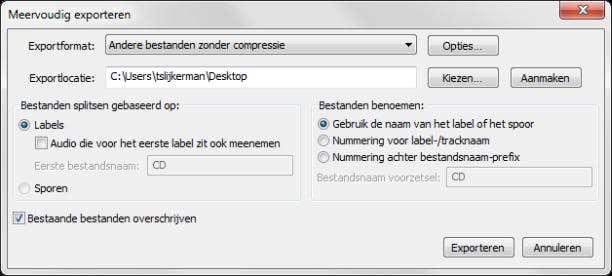Met het labelspoor verdeelt u een geluidsbestand in meerdere stukken.