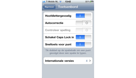 Wilt u de autocorrectiefunctie in iPhone iOS toch helemaal uitschakelen? Ga dan naar Instellingen / Algemeen / Toetsenbord en zet het schuifje voor Autocorrectie uit.
