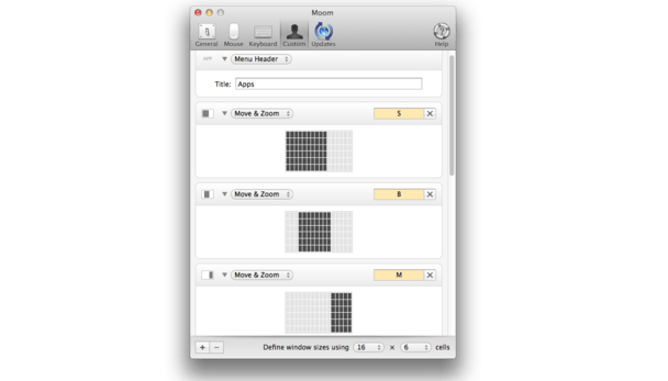 Er zijn een aantal apps die altijd op mijn Mac draaien, en ik wil bijna altijd dat hun vensters op een bepaalde plek met een bepaald formaat komen te staan. Maar soms verplaats ik ze of verander is het formaat van dergelijke vensters even, of de app of OS X zelf doet dit zonder dat ik hierom gevraagd heb. In plaats van handmatig alles terug te zetten, maak ik gebruik van Moom van Many Tricks om sneltoetsen in te stellen voor mijn favoriete vensterformaten en -posities.