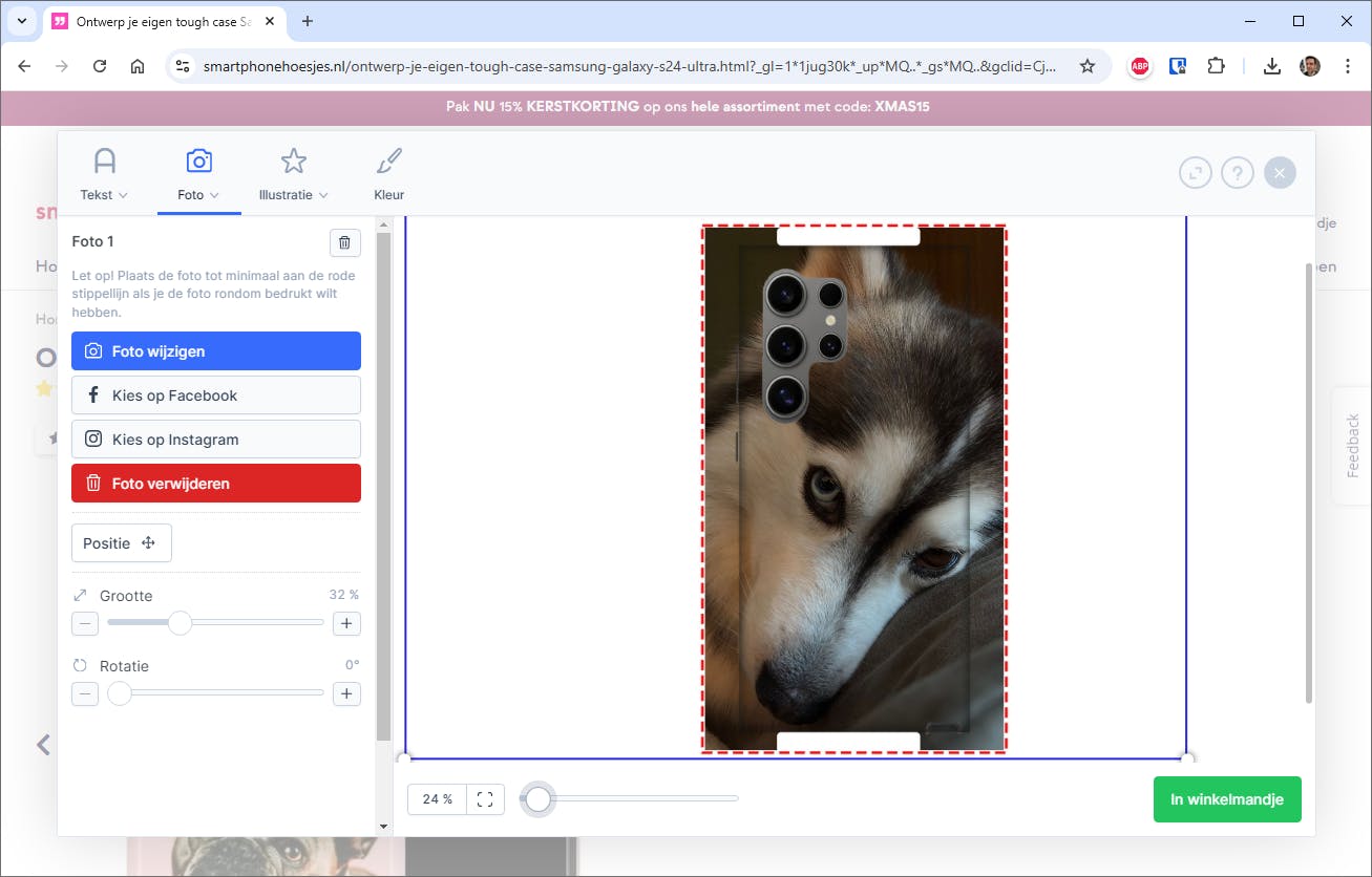 Voeg in de ontwerptool van Smartphonehoesjes.nl eenvoudig je eigen foto toe.