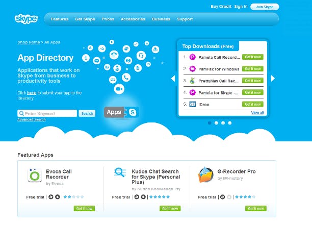 U kent ze van een smartphone, van Facebook, of sinds kort van Spotify: apps. Ook binnen Skype zijn er diverse apps te gebruiken. Het is de ideale manier om derden in staat te stellen voort te bouwen op de functionaliteit van Skype. Voor de meeste Skype-apps moet betaald worden. Er zijn apps die u in staat stellen om gesprekken op te nemen, die vertaalfunctionaliteiten bieden, die vooraf opgenomen berichten afspelen enzovoort. Helaas gaat het maar om tientallen apps. U installeert apps door in Skype te klikken op Extra / Apps / Get apps.