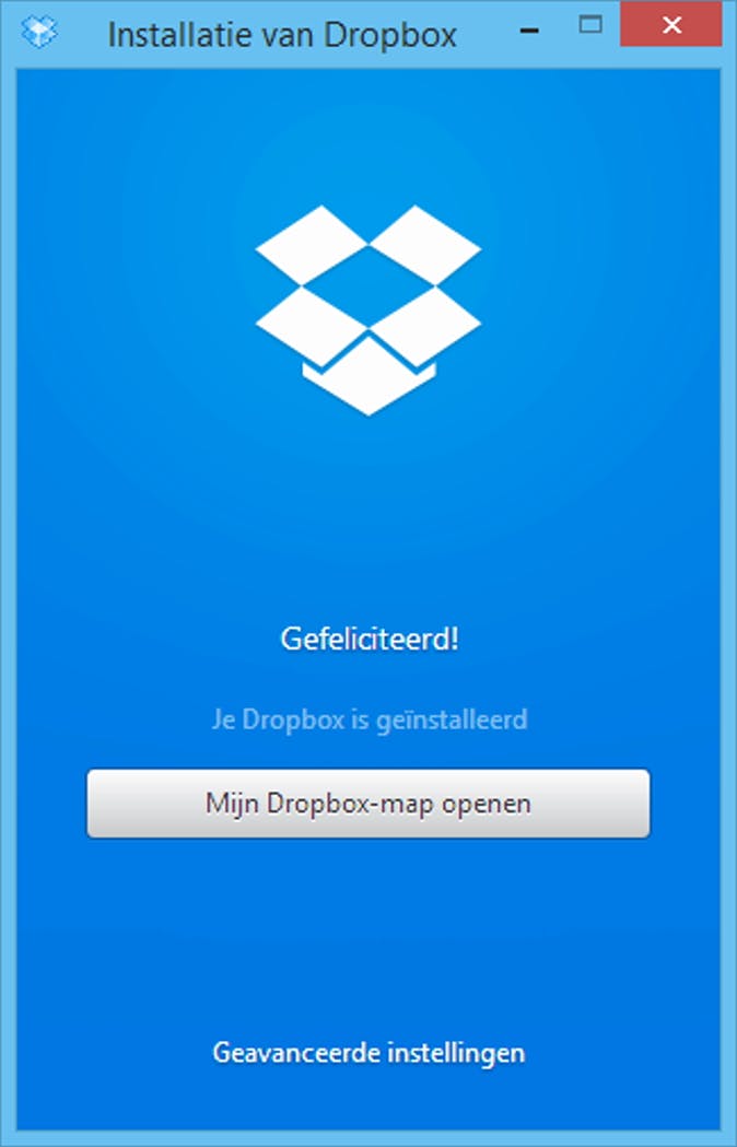 De online-opslagruimte die je van Dropbox krijgt, is net zo eenvoudig te gebruiken als een willekeurige lokale map van je eigen computer. Hiervoor gebruik je het gratis programma dat op de website www.dropbox.com te vinden is. Na de installatie meld je je aan met je accountgegevens van Dropbox. Heb je die nog niet, dan kun je je ter plekke registreren. Klik na het aanmelden liefst even op Geavanceerde instellingen. Standaard is je Dropbox-opslagruimte bereikbaar als een map onder je eigen gebruikersnaam (bijvoorbeeld C:\Gebruikers\Kees\Dropbox). Je kunt dit hier nog wijzigen in een andere map, zoals het kortere C:\Dropbox. Vanaf nu kun je bestanden eenvoudig van en naar je Dropbox-opslagruimte kopiëren of verplaatsen via Windows Verkenner (of Finder op een Mac) en hoef je niet per se meer naar de website te gaan.