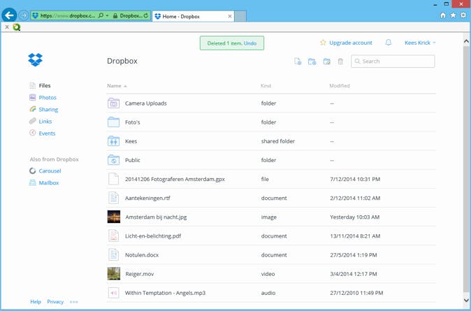 Tot slot bestaat er uiteraard ook een app voor je smartphone of tablet. Bij de bekende dienst Dropbox krijg je twee gigabyte opslagruimte gratis. Dat lijkt tegenwoordig wat weinig, maar daar kun je heel wat bestanden in kwijt.