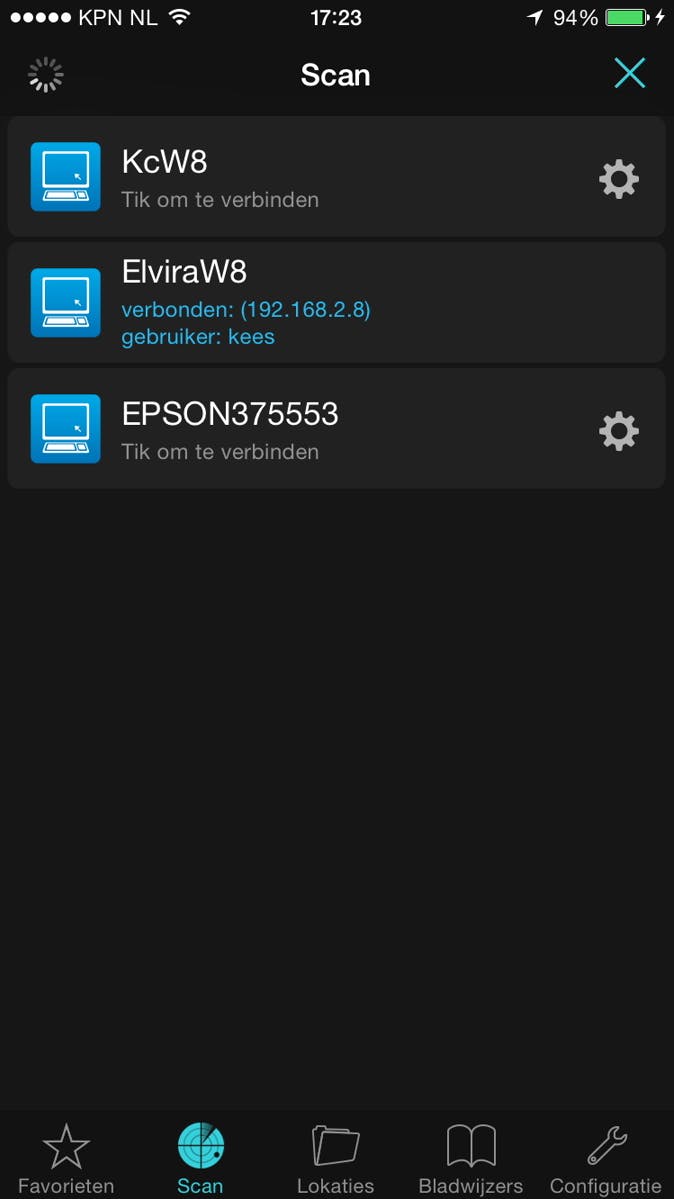 Gaat het om openbare bestanden, dus waar iedereen die op jouw thuisnetwerk zit zomaar bij mag, dan is aanmelden vaak niet nodig of gebruik je een gast-account. Voorbeelden van bestandsbeheerders zijn FileBrowser (Lite) voor iOS en ES File Explorer voor Android. In FileBrowser verschijnen op het tabblad Scan de beschikbare netwerkapparaten. Tik er eentje aan om verbinding te maken en meld je indien nodig aan met de gebruikersgegevens.