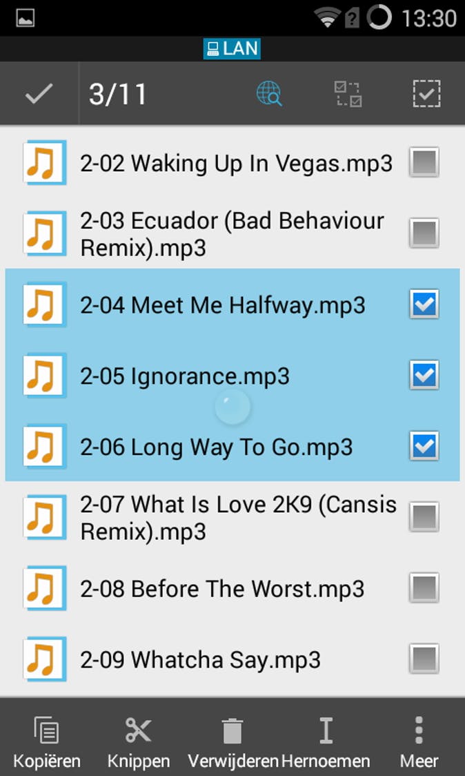Bestanden van het netwerkapparaat naar je tablet of smartphone kopiëren (of andersom) werkt met beide apps eenvoudig. Bijvoorbeeld door even je vinger op een bestand gedrukt te houden, zodat er selectievakjes achter verschijnen. Op die manier kun je direct meerdere bestanden markeren. Tik op Kopieer (FileBrowser) of Kopiëren (ES File Explorer), ga in de app naar een ander apparaat en plak de geselecteerde bestanden daar in een map naar keuze.