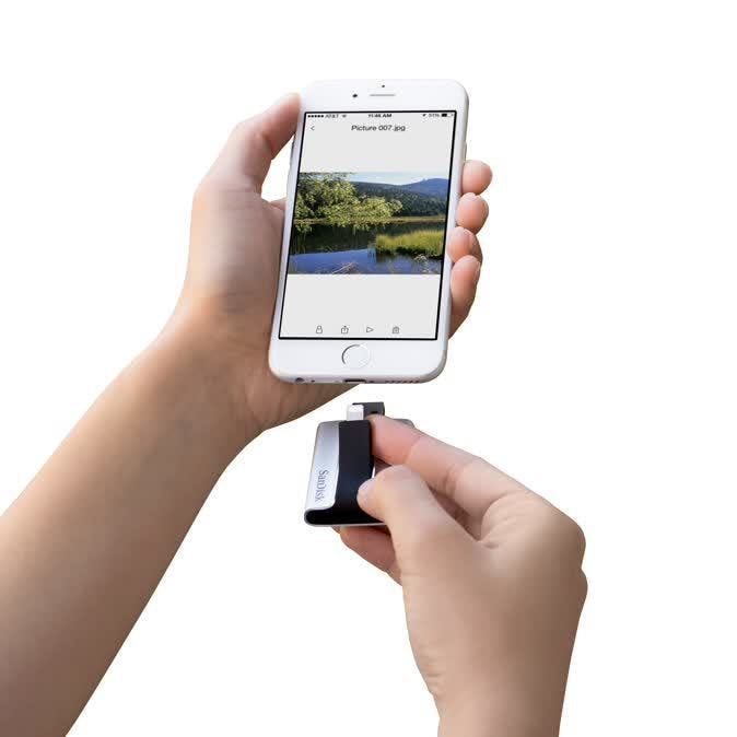 Een usb-stick past helaas niet in een smartphone of tablet. Of toch wel? SanDisk heeft speciale usb-sticks bedacht met niet één maar twee aansluitingen. Aan het ene uiteinde zit een gewone usb-stekker, zodat je hem op jouw computer kunt aansluiten. Aan de andere zijde zit een stekker die past op je smartphone of tablet. De SanDisk Ultra Dual USB-drive heeft een micro-usb-stekker en is bedoeld voor Android-apparaten. De SanDisk iXpand heeft een Lightning-stekker en past op recente iPhones en iPads. Ze zijn beschikbaar in capaciteiten van 16, 32 en 64 gigabyte.