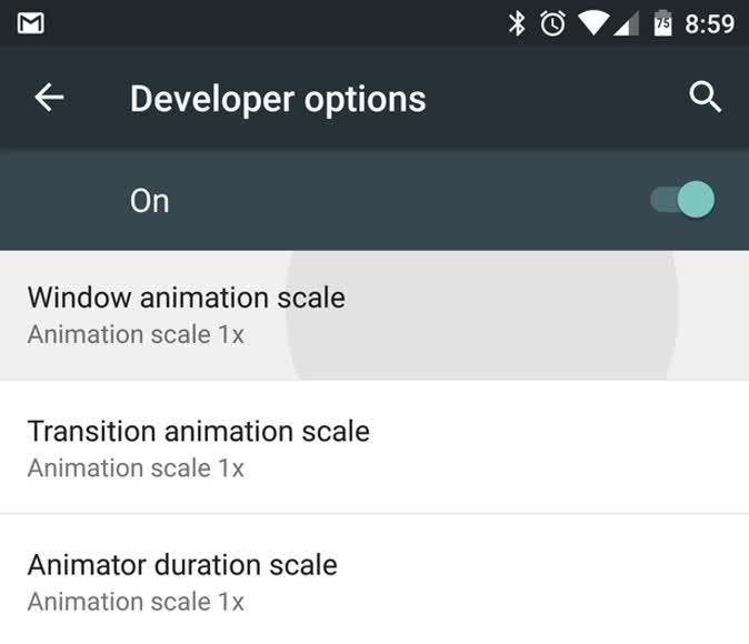 Terug naar de animaties. Scrol in Developer Options naar Drawing en zoek naar Window animation scale, Transition animation scale en Animator duration scale. Deze staan standaard allemaal ingesteld op 1x. Deze animaties zijn de mooie overgangen die je ziet wanneer apps geopend en afgesloten worden, menu's uitschuiven enzovoorts. Ze helpen om vertragingen te verdoezelen wanneer het systeem aan het nadenken is, maar op een snel apparaat heb je geen trage instellingen nodig. Je kunt deze allemaal op 0.5x zetten voor een sneller aanvoelende interface.