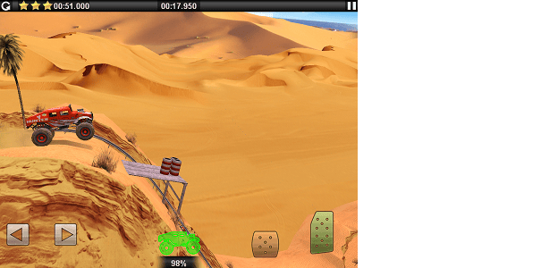 Offroad rijden is een kunst apart. In Offroad Legends Sahara kruip je achter het stuur van een offroadwagen en probeer je binnen de tijd de finish te bereiken. De baan is voorzien van een groot aantal schansen en heuvels, die je zult moet zien te overwinnen. Dit klinkt natuurlijk eenvoudig, maar is het zeker niet. Zo moet je zorgen dat je na een sprong zo vlak mogelijk land, om de belasting goed te verdelen over de voor- en achteras. Doe je dit niet? Dan kan een as breken. Dit betekent overigens niet dat de race gelijk over is. Je kunt proberen op alleen je vooras alsnog de finish te bereiken, wat uiteraard een uitdaging is. Onderweg kom je nitro tegen, waardoor je flinke boost krijgt en dus sneller de finish kan bereiken. Neem alle sprongen op de juiste manier om alle nitro te verzamelen en een zo snel mogelijke tijd neer te zetten. Kijk echter uit voor de bommen, want zodra je die raakt ontploft je auto. Offroad Legends Sahara is een leuk spel, dat ook nog eens gratis te downloaden is in de App Store.