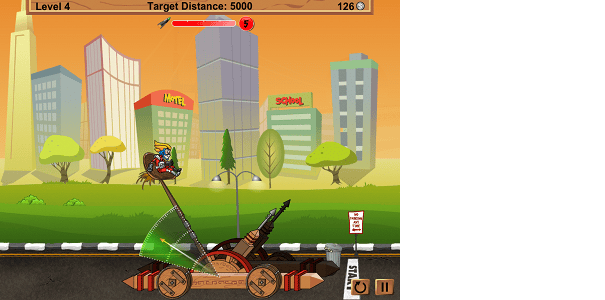 Stel de katapult nauwkeurig in en schiet Propel Man over de finish