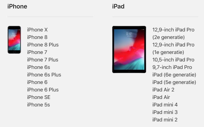 Daarnaast is niet ieder iOS-toestel geschikt voor de nieuwste iOS-versie. Welke wel? Dat zie je hieronder.