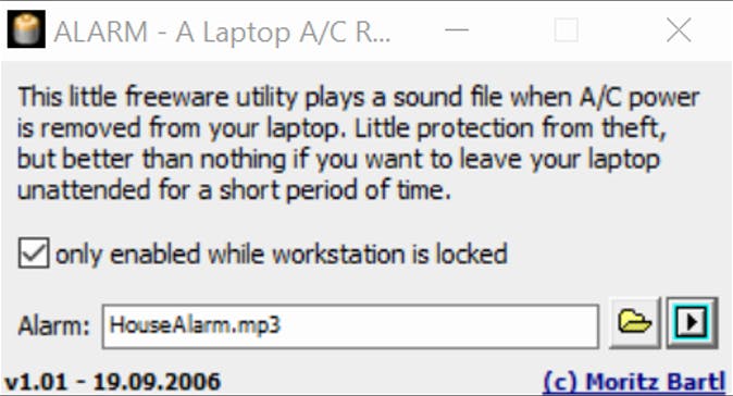Tip 01 A.L.A.R.M is een zeer eenvoudig tooltje dat je meer zekerheid geeft als je je laptop kort alleen achterlaat.