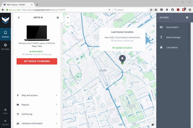 Indien je laptop toch gestolen is, wil je deze natuurlijk kunnen volgen en de dader proberen te pakken. Dat is mogelijk met software zoals Prey. De gratis variant hiervan stelt je in staat om enigszins een locatie te bepalen, berichten te ontvangen en het scherm te vergrendelen. Betaalde varianten hebben de optie om de laptop op afstand te wissen en om bestanden terug te halen die je absoluut nodig hebt. Je downloadt Prey vanaf preyproject.com, waar je eerst een gebruikersaccount moet aanmaken.