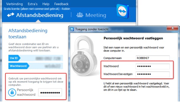 Stel de TeamViewer-beveiliging in zodat je op afstand de computer kunt overnemen.
