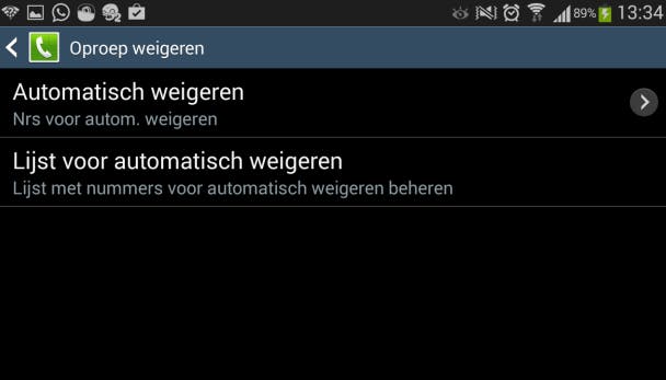 Helemaal bovenin staat de optie Oproep weigeren. Druk hierop en je krijgt twee opties voorgeschoteld. Bij Automatisch weigeren kun je kiezen om 'geen', 'alle' of 'alleen telefoonnummers uit de Lijst voor automatisch weigeren' automatisch te weigeren. Bij Lijst voor automatisch weigeren kun je zelf bepalen welke nummers er geblokkeerd worden. Je kunt onbekend aanvinken om niet meer door onbekende nummers gebeld te worden. Bij Nieuw kun je zelf nummers toevoegen.
