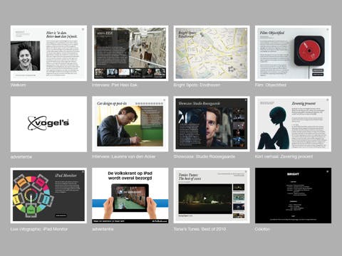 De app moet zich onderscheiden van het magazine. Bright claimt in de iPad-app andere informatie te brengen dan het tijdschrift. De eerste editie bevat o.a. een interview en een 90 minuten durende documentaire.