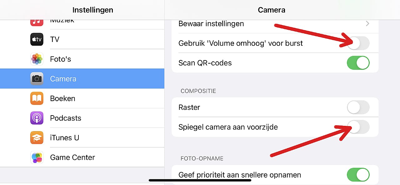 Een van de gekkigheidjes waarmee je als gebruiker van iOS 14 (iPadOS 14 heeft ‘t zelfde euvel trouwens) mee moet leren leven. Overigens: als je dan tóch in die app Instellingen zit... Door de schakelaar achter Gebruik ‘Volume omhoog’ voor burst aan te zetten, kun je de volume-omhoog-knop gebruiken om een snelle serie foto’s te schieten. Normaal gesproken - met deze optie uitgeschakeld - start een video-opname als je die knop langer ingedrukt houdt in de foto-modus.