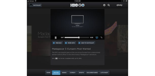 Om de content van HBO GO te benaderen zul je een abonnement op HBO nodig hebben, maar daarna kun je zelfs buitenshuis met je iPad op de televisie van een vriend via Wi-Fi naar HBO GO-content kijken - ook als die persoon zelf geen HBO-abonnement heeft.