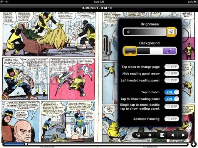 Vooral het lezen van comics is nu een genot. Dit was door het kleurenscherm eigenlijk al leuker dan lezen op papier. Voordelen genoeg: het kost geen ruimte in je huis, je kunt de nieuwste comics direct na release lezen en het ziet er door het mooie kleurenscherm van de iPad veel mooier uit dan op het fletse papier waar veel comics tegenwoordig op gedrukt worden. Daar komt bij dat je comics nu daadwerkelijk op hun oorspronkelijke formaat kunt lezen, zonder dat je op de pagina nog moet scrollen. Ook op een gewoon formaat iPad is het lezen van comics overigens erg aangenaam.
