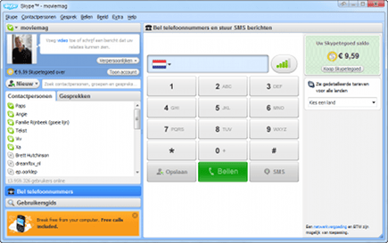 Naast het bellen van pc naar pc kunt u (tegen betaling) ook rechtstreeks bellen naar een regulier telefoonnummer.