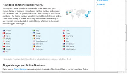 Het tegenovergestelde van de vorige stap is ook mogelijk. Door een Skype-nummer aan te vragen, wordt er een regulier telefoonnummer gekoppeld aan uw account, zodat men met een gewone telefoon naar uw account kan bellen. Zo kunt u reguliere telefoontjes ontvangen op uw computer (of ieder ander apparaat waarop u Skype hebt staan). Helaas is hier wel een flink prijskaartje aan verbonden, namelijk 17,25 euro voor drie maanden of 57,50 euro voor een heel jaar (omgerekend dus 4,79 euro per maand). Daarentegen biedt het wel het voordeel dat men gewoon uw Nederlandse Skype-nummer kan bellen wanneer u op vakantie bent in het buitenland. Dan moet u natuurlijk wel een pc of telefoon meenemen met daarop Skype. U kunt ook een buitenlands nummer aanmaken, zodat uw vrienden vanuit het buitenland naar een - voor hun - lokaal nummer bellen, terwijl u zich in Nederland bevindt. Uiteraard kan het ook uw vaste telefoonlijn vervangen, maar prijstechnisch levert dat wellicht te weinig voordeel op tegenover het feit dat u altijd een Skype-apparaat online moet hebben staan. U vraagt een Skype-nummer aan door te surfen naar Skype, te klikken op Prijzen en vervolgens in de lijst Oproepen ontvangen van vaste en mobiele nummers te selecteren. Klik vervolgens op Buy a number (het gaat via de Engelstalige site), log in, selecteer een nummer, betaal en klaar bent u.