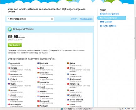 Tegen een maandelijkse prijs van 9,95 euro kunt u onbeperkt bellen naar vast nummers wereldwijd.