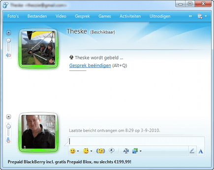 Skype installeren is natuurlijk een kleine moeite, maar wanneer u het alleen wilt gebruiken voor gesprekken tussen twee computers, dan is dit wellicht niet eens nodig. Er zijn prima alternatieven, zoals Live Messenger van Microsoft. Live Messenger (ooit begonnen onder de naam Windows Messenger) is van oorsprong een chatprogramma waarmee u over en weer berichtjes kunt sturen met uw contactpersonen. Het programma bevat ook de mogelijkheid om deze contactpersonen op te 'bellen'. Om een dergelijk gesprek te beginnen dubbelklikt u binnen Live Messenger op de gewenste contactpersoon om een chatvenster te openen en vervolgens op Gesprek. De webcam zal automatisch in worden geschakeld wanneer u deze hebt aangesloten en het videogesprek wordt tot stand gebracht. Voor een-op-eengesprekken werkt dit prima, wilt u echter een groepsgesprek met video, dan zal Live Messenger weinig voor u kunnen betekenen.