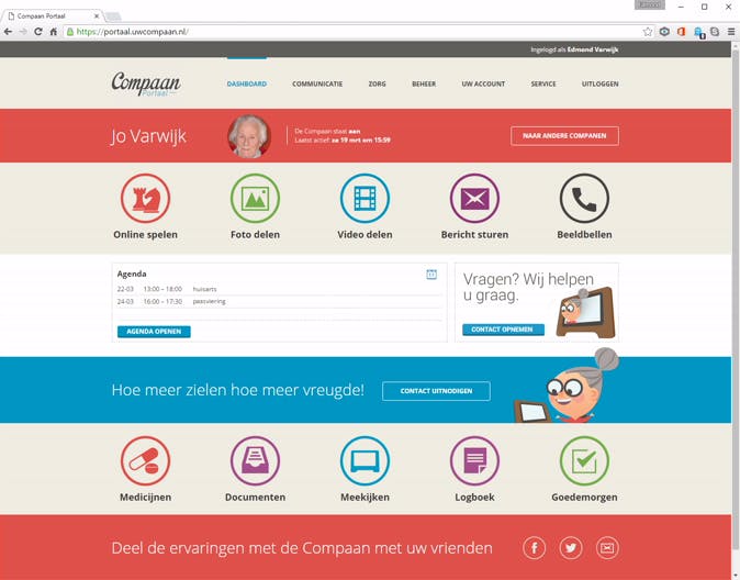 Via de portal kunnen familie, vrienden en zorgverleners communiceren met de Compaan-gebruiker en ook zorgtaken vervullen.