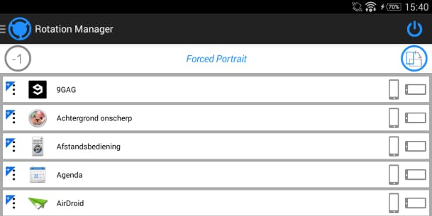 Natuurlijk kun je op je Android instellen of het beeld mag roteren tussen portret- en landschapsmodus wanneer het toestel gedraaid wordt. Maar vaak werkt het net niet helemaal naar wens. Sommige apps forceren een bepaalde modus en vaak komt het voor dat je je toestel per ongeluk net iets teveel kantelt waardoor je plots je oriëntatie kwijt bent omdat het beeld een kwartslag draait. Rotation Manager geeft je net even wat meer mogelijkheden dan Android zelf doet. Je kunt per app aangeven of er geroteerd mag worden (en in welke beeldmodus de app moet blijven), maar je kunt ook algemene rotatie-instellingen bewerken. Bijvoorbeeld om één modus te blijven forceren. Een onmisbare app als je je tablet (of smartphone) gebruikt voor het kijken van video's.