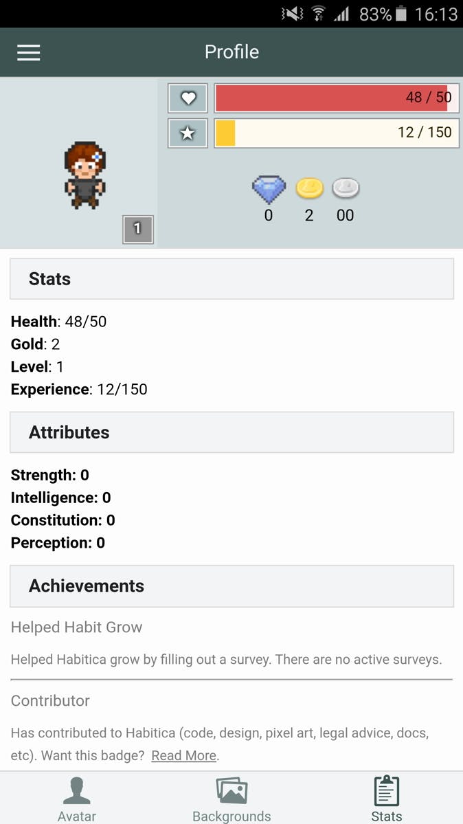Je leven is gewoon een hele lange RPG (Role Playing Game)! Met HabitRPG maak je ook een karakter aan, waarmee je ervaringspunten verzamelt om te levelen, geld verdient om wapens, outfits, dieren en andere dingen te kopen en vrienden bevecht. Hoe je ervaring opdoet voor je karakter? Door rotklusjes uit het dagelijks leven te doen! Zo beloon je jezelf voor het uitruimen van de vaatwasmachine, dagelijks flossen en andere narigheid. Hoe meer (dagelijkse) taken je volbrengt en achievements je haalt, hoe beter je digitale evenknie wordt. De HabitRPG-app is wel iets beter op iOS, hopelijk trekken de ontwikkelaars dit op korte termijn gelijk. Maar het werkt ook via de website.