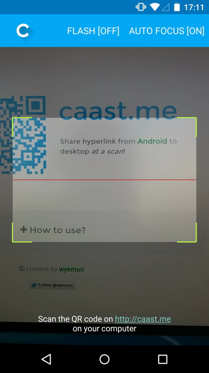 Soms stuit je op je Android wel eens op een site die je graag eens op je pc terugleest, of gewoonweg op het grote scherm wilt zien. Dan komt CaastMe van pas. Wanneer je een site tegenkomt die je op je pc wilt openen, open je eerst de website www.caast.me in je browser van je pc. Deze site laat een qr-code zien. Ga vervolgens naar je mobiele browser, kies delen en vervolgens CaastMe. Een scanner verschijnt in beeld om de qr-code van je pc-scherm te lezen. Nadat de code is gelezen verschijnt de webpagina in beeld. CaastMe is een handige manier om snel een pagina te delen, maar ChromeToPhone werkt net even wat makkelijker, alleen zit je hiervoor vast aan de Chrome-browser. CaastMe niet.