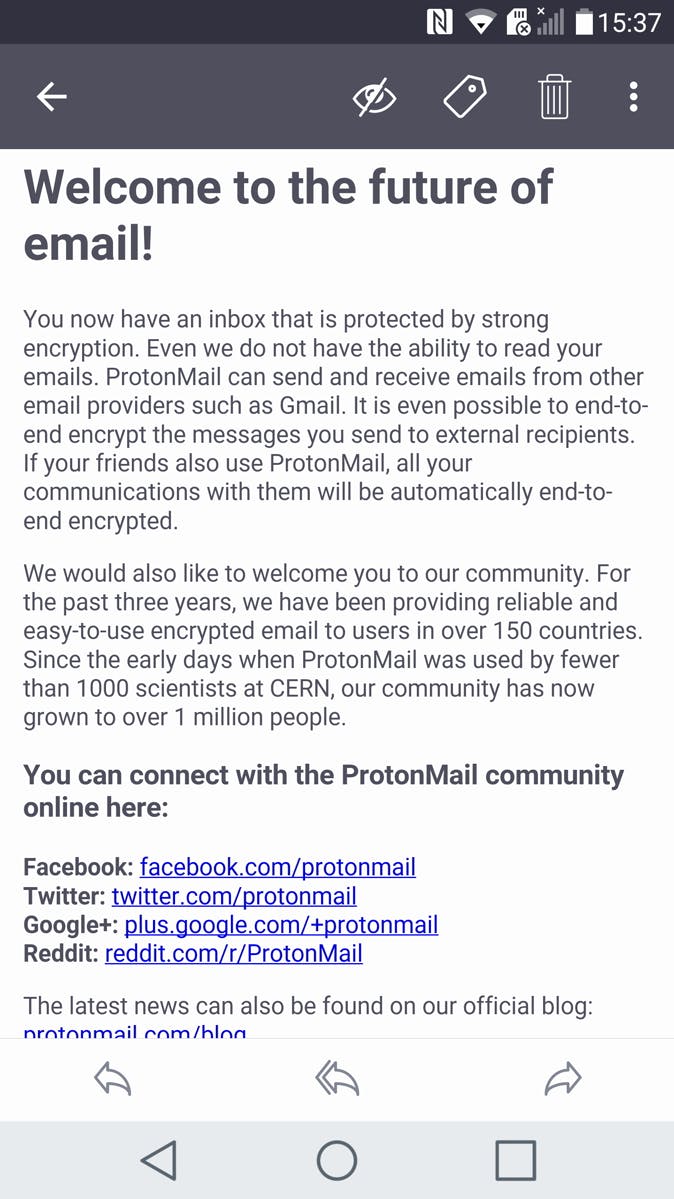 Het is logisch dat je liever niet wilt dat anderen je mailtjes lezen. Maar vanzelfspreken is het niet. Op open netwerken is je mailverkeer makkelijk te onderscheppen, partijen als Google gebruiken het om je advertenties voor te schotelen en overheden misbruiken anti-terreurwetgeving om met een sleepnet ieders inbox te analyseren. Veilig mailen is echter steeds toegankelijker. Bijvoorbeeld met ProtonMail. In deze app maak je eenvoudig een mailadres (desgewenst zelfs met een veiliger .ch-domein). De mail-app is compleet, overzichtelijk en praktisch, alleen om de end-to-end encryptie te kunnen gebruiken die je mailtjes niet-onderschepbaar maken voor hackers, moet de ontvanger van de mailtjes ook een ProtonMail-gebruiker zijn.