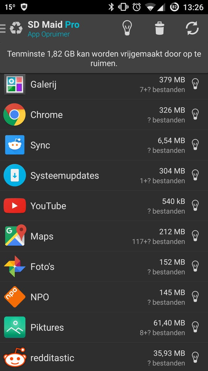 Er zijn veel apps beschikbaar in de Play Store om opslagruimte mee vrij te maken, maar veel apps bieden misleidende overbodige extra's zoals RAM-opschoners of virusscanners. SD Maid kent geen overbodigheden, maar is juist een zeer prettige app om je toestel te ontdoen van overbodige bestanden, tijdelijke bestanden en lege mappen. De Pro-versie (€ 2,42) is ook zeker de moeite waard, aangezien deze tijdelijke bestanden van geïnstalleerde apps kan verwijderen, wat in mijn geval behoorlijk wat gigs vrijmaakte. Tevens kun je in AppBeheer van je geïnstalleerde apps inzien welke actief zijn en automatisch opstarten met het systeem en apk-installatiebestanden verkrijgen, handig voor app-backups. Werkelijk onmisbaar op zowel oude als nieuwe Androids.