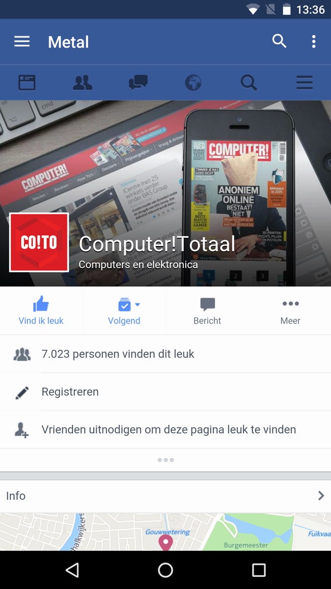 Ik kan de Facebook-app niet vaak genoeg afraden. Hij belast het systeem, accu en is met z'n permissies gewoon een soort spyware. De mobiele website is een goed alternatief, maar voor wie graag een app blijft gebruiken is Metal for Facebook een goed alternatief (evenals TinFoil overigens). De app is overzichtelijk, batterijvriendelijk en erg vlot. Fanatiekere Facebookers kunnen bovendien in het notificatiescherm van Android zien of er notificaties, berichten of vriendschapsverzoeken zijn. Tevens kun je gewoon de Facebook-chat gebruiken, zodat je dat batterij- en privacy-minachtende Facebook Messenger ook kunt verwijderen. Hetzelfde geldt voor Twitter, want dat kan Metal for Facebook, ondanks zijn naam, ook weergeven.