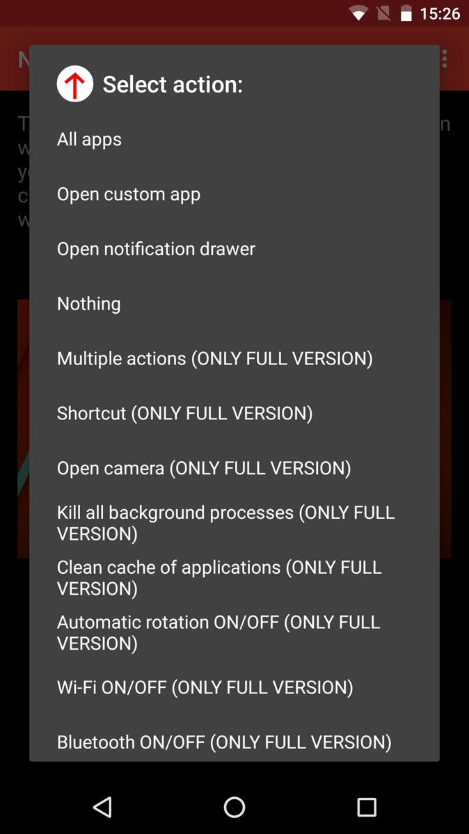 Je Android heeft drie knoppen: terug, home en app-overzicht. Wanneer je knoppen niet fysiek, maar (softwarematig) op het scherm zijn, kun je de home-knop ten alle tijden omhoogschuiven om in Google Now te komen. Google Now is echter behoorlijk achtergesteld in Nederland. Met Now Gesture Tweaks kun je een andere actie verbinden aan het omhoogschuiven van de actieknop. Bijvoorbeeld het openen van een app of notificatie-overzicht. De betaalde versie (€ 0,61) biedt meer mogelijkheden, zoals instellingen aan- of uitzetten, de camera starten, apps afsluiten en meer.