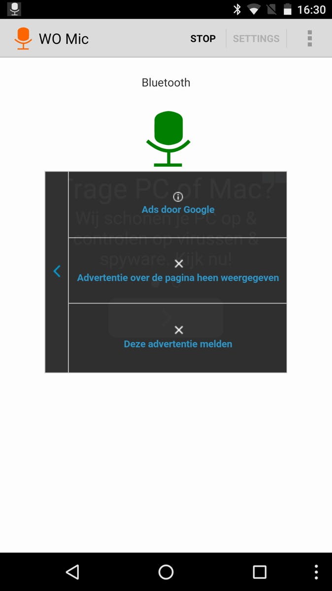 Heb je geen microfoon op je pc, maar wil je deze graag inzetten voor bijvoorbeeld bij het skypen of gamen? Gebruik dan via Wo Mic de microfoon van je Android. Nadat je de app geïnstalleerd hebt installeer je ook de Wo Mic programmaatjes op de pc (Windows en Mac), zodat je Android herkend wordt als virtuele microfoon. Je verbindt je apparaten met elkaar via bluetooth, wifi of kabel en je hebt de microfoon van je mobiele apparaat aangesloten op je pc. Minpunt van Wo Mic is wel dat je overladen wordt met advertenties in de app.