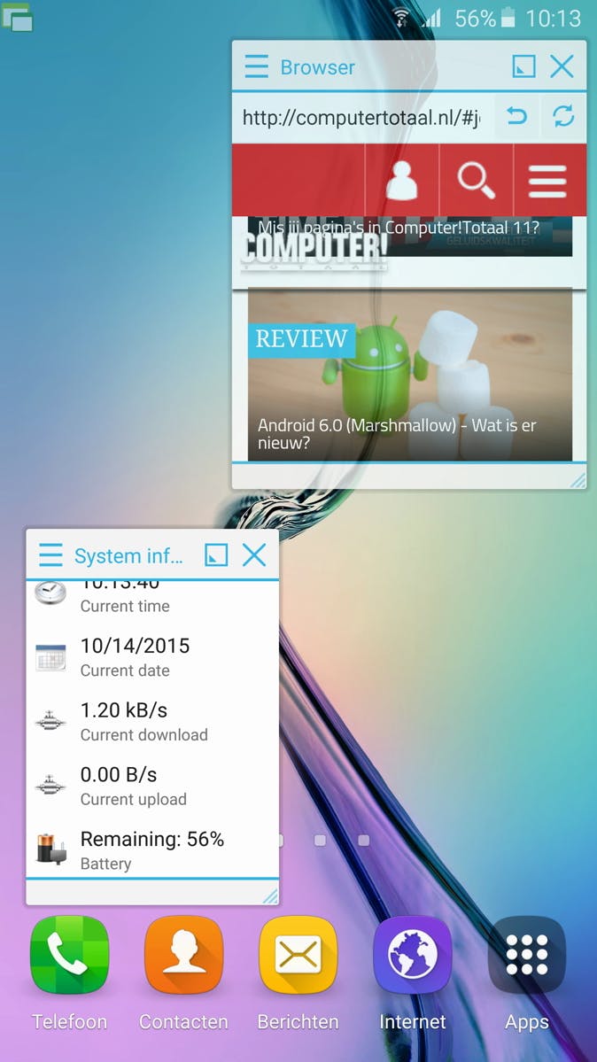 Vooral op grote schermen komt Floating Apps van pas. De app is eigenlijk een gereedschapskist van handige kleine tooltjes die je op de voorgrond van je scherm zet. Vooral het kleine browsertje is handig om even snel iets op te zoeken als je in een andere app bezig bent. Je opent een extra venstertje door linksboven op het Floating Apps-icoontje te drukken en een tool te kiezen. Maar er is ook een zaklampknop, stopwatch, bladwijzer en meer. Tegen betaling (€ 2,21) breid je het venster-assortiment uit, met bijvoorbeeld een Youtube-, Facebook-, notitie- of video-venster.