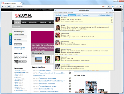 Hebt u een Twitteraccount, dan is Chromed Bird een handige uitbreiding voor uw Chrome-browser. Installeer de extensie en u krijgt er een extra knopje bij in uw menubalk. Vul uw gebruikersnaam en wachtwoord voor Twitter in en u kunt - zonder de browser te verlaten - snel en gemakkelijk tweets lezen en versturen. Natuurlijk is Chromed Bird voorzien van een aantal handige opties, zo kunt u links naar afbeeldingen direct bekijken door er met uw muiscursor overheen te bewegen en kunt u lange url's inkorten. Ook kunt u eenvoudig tabs aanmaken via uw rechtermuisknop.
