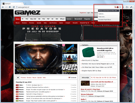 Adobe Flash kan de internetbeleving verfraaien, maar niet iedereen is er altijd van gediend. Zo kunnen bewegende Flash-elementen (bijvoorbeeld banners) de aandacht afleiden van de tekst. In dit soort gevallen kan het van pas komen om Flash te blokkeren, wat u met de extensie FlashBlock eenvoudig regelt. FlashBlock beperkt daarmee het geheugengebruik en bespaart processorkracht. Op de instellingenpagina kunt u via de witte lijst bepaalde websites uitsluiten van FlashBlock. Dus als Flash gebruikt wordt voor bijvoorbeeld navigatiedoeleinden, dan voegt u de url's van deze websites toe en zullen de websites gewoon getoond worden zoals bedoeld.