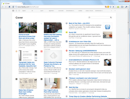 Leest u uw dagelijkse portie rss-feeds via Google Reader? Kijk dan eens naar de Chrome-extensie Feedly! Deze extensie voegt een extra knop toe aan uw menubalk, waarmee u direct toegang hebt tot een fraaie pagina waarop uw feeds worden weergegeven in magazine-achtige vorm. De eerste keer dient u in te loggen met uw Gmail-account, daarna is een druk op de knop voldoende om naar uw eigen magazine te gaan. Feedly biedt naast Google Reader tevens ondersteuning voor Twitter, Delicious, YouTube en Amazon. Voor alle websites is eenmalig inloggen voldoende.