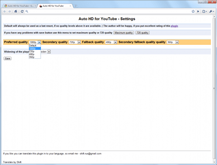 Een andere handige Chrome-extensie voor YouTube is vooral geschikt voor mensen die een snelle internetverbinding hebben (en wie heeft dat tegenwoordig niet?) en in het bezit zijn van een groot breedbeeldscherm. Met Auto HD for YouTube zullen namelijk alle filmpjes die u op YouTube bekijkt automatisch in zo hoog mogelijke resolutie worden afgespeeld. Dit scheelt weer een keer klikken, herladen, enzovoort. Na installatie van de extensie vult u eenmalig uw resolutievoorkeuren in, daarna hebt u er geen omkijken meer naar en zult u waarschijnlijk zelfs vergeten dat u deze plug-in geïnstalleerd hebt.