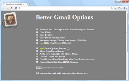 Gebruikt u Gmail en leest en schrijft u uw e-mails meestal gewoon via de browser? Kijk dan ook eens naar 'Better Gmail (Unofficial)'. Deze extensie biedt een aantal handige opties, die Gmail nog prettiger maken om mee te werken. U stelt deze opties in via de configuratiepagina van de extensie en u hebt hier bijvoorbeeld de keuze om advertenties te blokkeren, het chatvenster te verbergen en het aantal ongelezen e-mails te tonen in het tabblad-pictogram. Ook kunt u ervoor kiezen om e-maillinks standaard in Gmail te laten openen. En er zijn nog diverse andere mogelijkheden!
