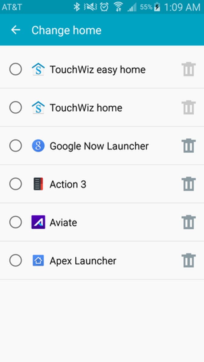 Als je een launcher hebt uitgeprobeerd en wilt omschakelen, ga dan naar Settings > Default Applications > Home en selecteer de launcher die je voorkeur heeft. Met sommige interfaces, zoals Samsung's TouchWiz, kun je meteen vanaf dit scherm een launcher verwijderen.