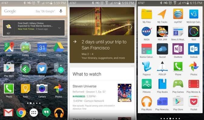 Google's gesproken commando's worden steeds sterker en er komen telkens nieuwe mogelijkheden. Dus als je echt een Google telefoon wilt hebben, moet je de Google Now Launcher gebruiken. Je Google Now kaarten zijn slechts een swipe van het thuisscherm verwijderd en er wordt altijd naar een gesproken commando geluisterd. De app-drawer, animaties en algehele esthetiek is een maatstaf voor Material Design, waardoor je een Nexus-achtige ervaring krijgt.